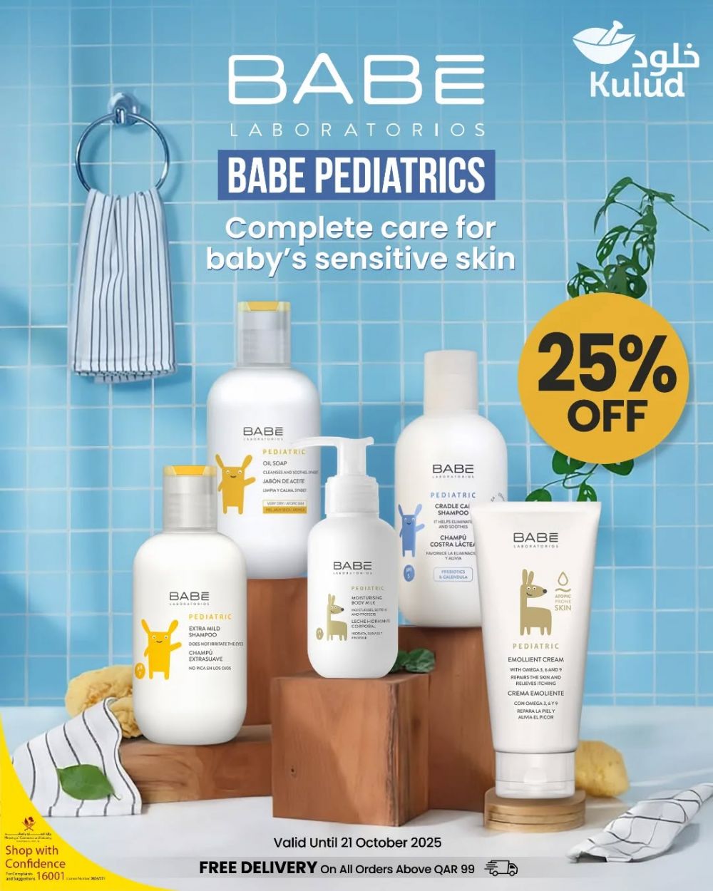 يُقدّم بيبي بيدياتريك عنايةً شاملةً من الاستحمام إلى حماية البشرة من الشمس.