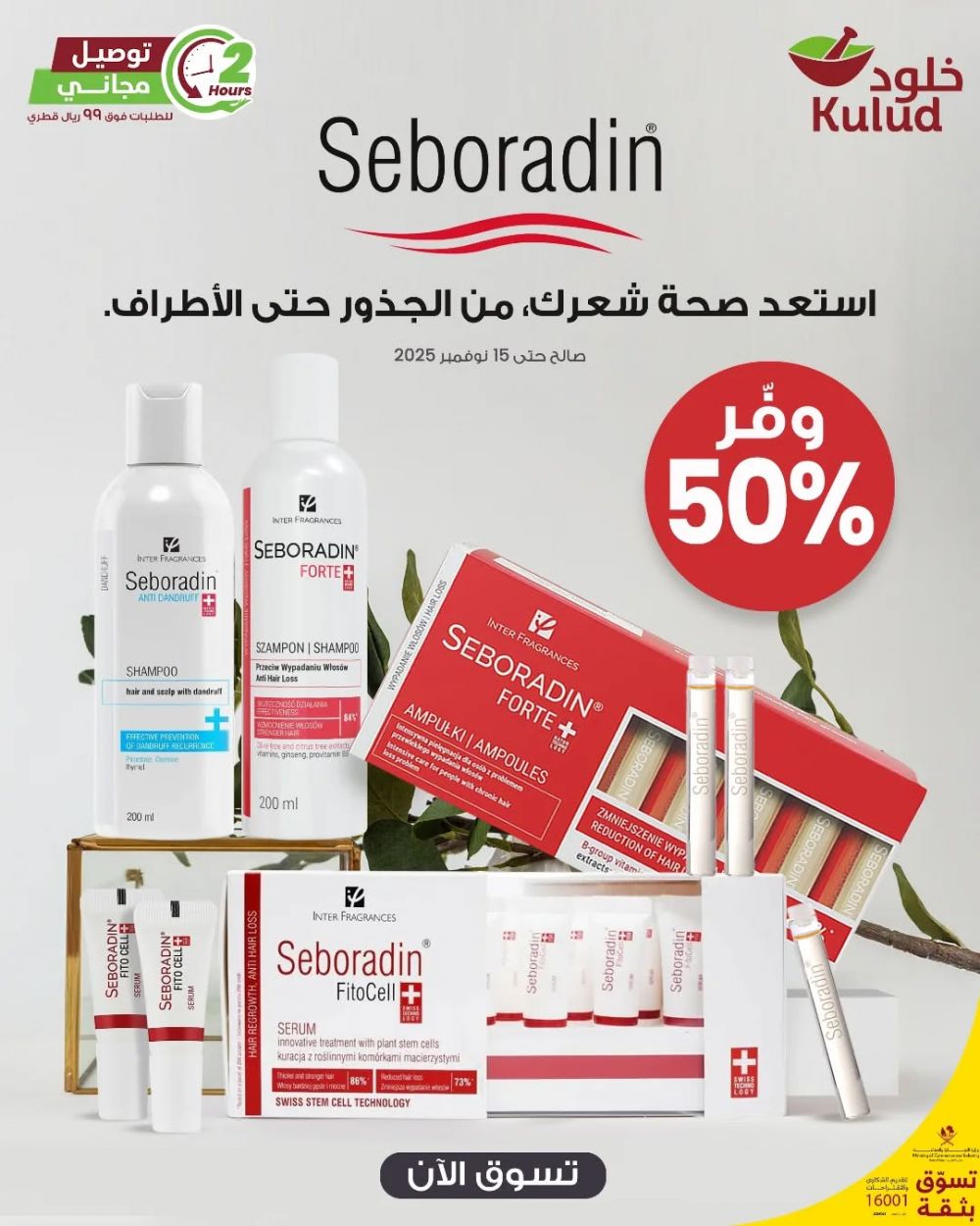 خصم ٥٠٪ على سيبورادين! أوقف تساقط الشعر والقشرة العنيدة بتركيبات احترافية. وفر الكثير على أمبولات فورتي، وشامبو مضاد للقشرة، وعلاجات مكثفة أخرى. حان وقت النتائج الحقيقية، بنصف السعر.