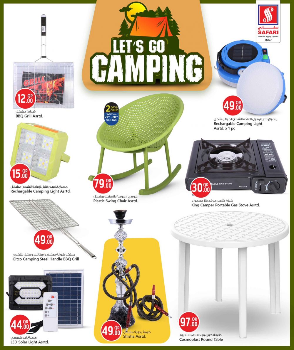 استعدوا لرحلة تخييم رائعة مع عرض "هيا بنا ننطلق"! من الخيام إلى معدات الشواء، ستجدون كل ما تحتاجونه لرحلة تخييم مثالية تحت النجوم.