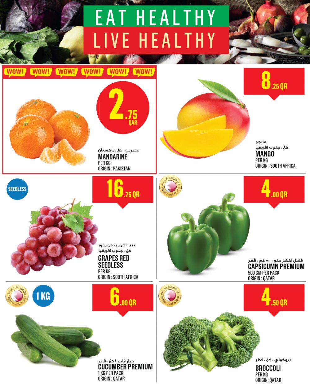 تسوق الفواكه والخضراوات واللحوم الطازجة،