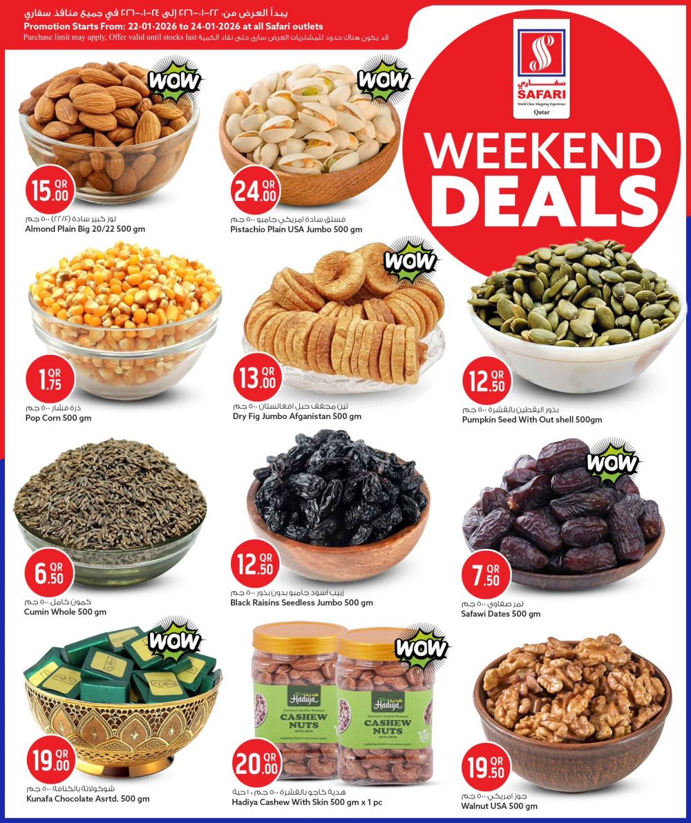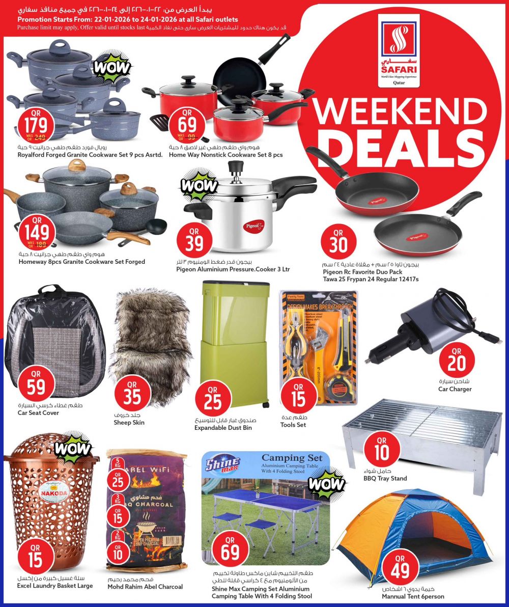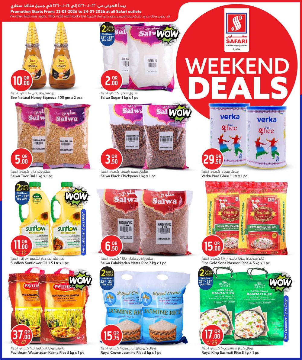 عروض نهاية الأسبوع المميزة متوفرة الآن في سفاري! استمتع بعروض لا تُقاوم على البقالة، والأطعمة الطازجة، والأدوات المنزلية، ومستحضرات التجميل، والملابس، والأجهزة المنزلية، وغيرها الكثير!