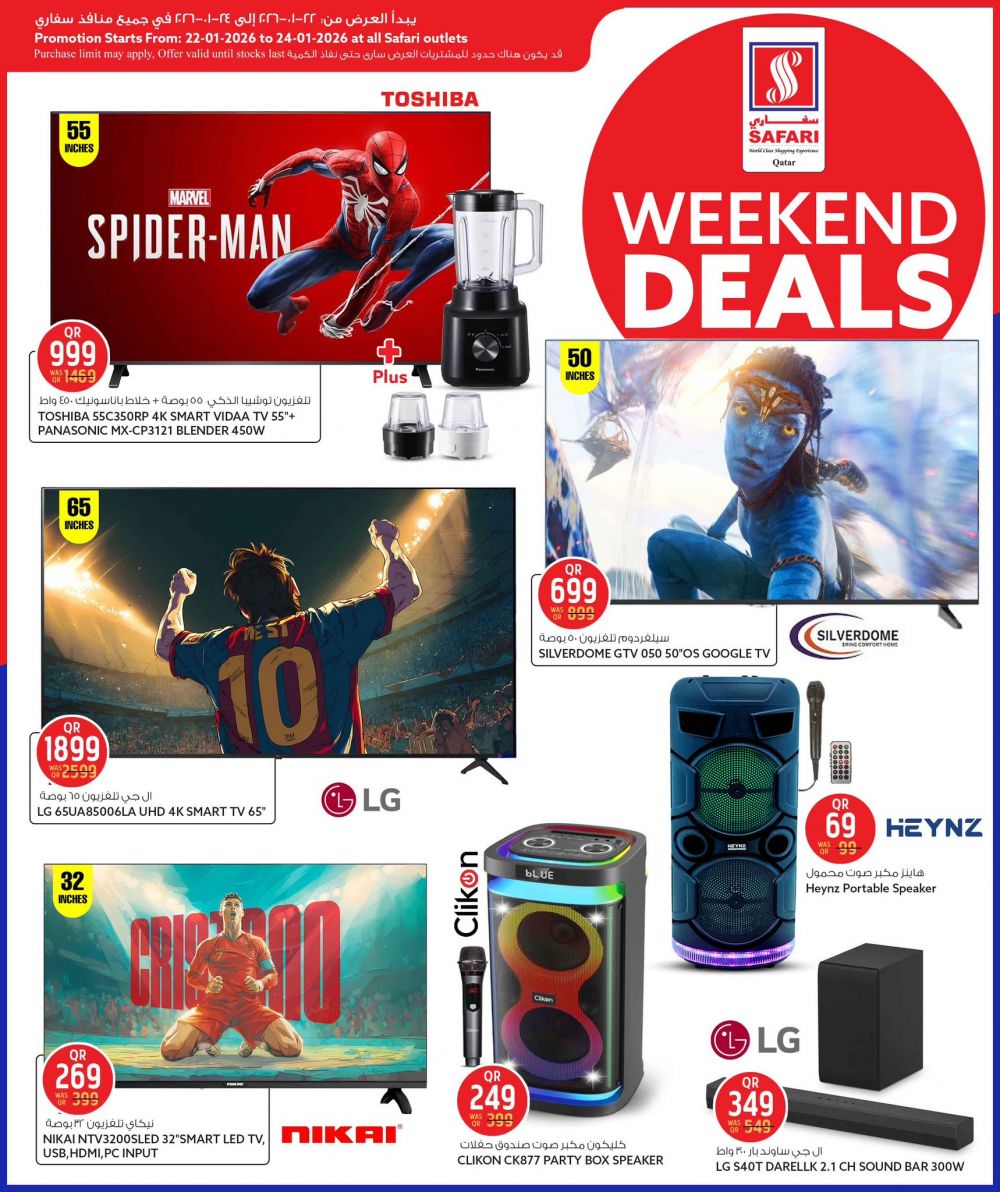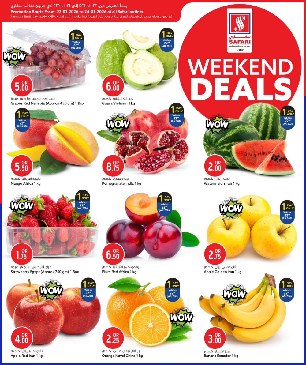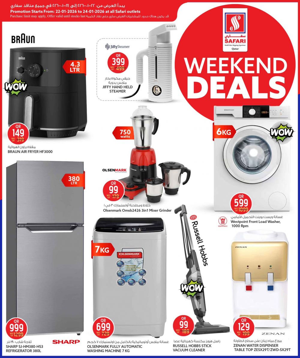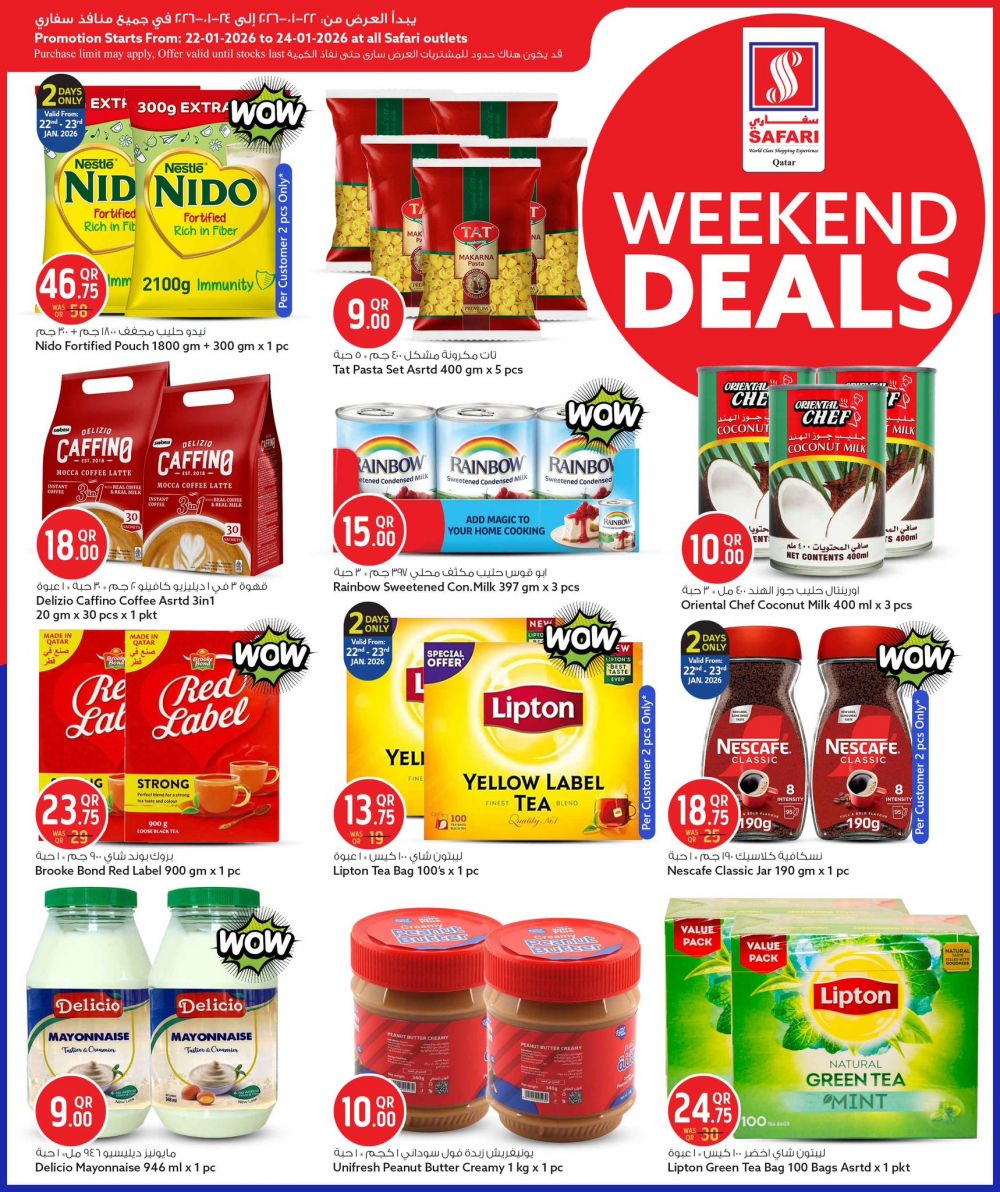 عروض نهاية الأسبوع المميزة متوفرة الآن في سفاري! استمتع بعروض لا تُقاوم على البقالة، والأطعمة الطازجة، والأدوات المنزلية، ومستحضرات التجميل، والملابس، والأجهزة المنزلية، وغيرها الكثير!