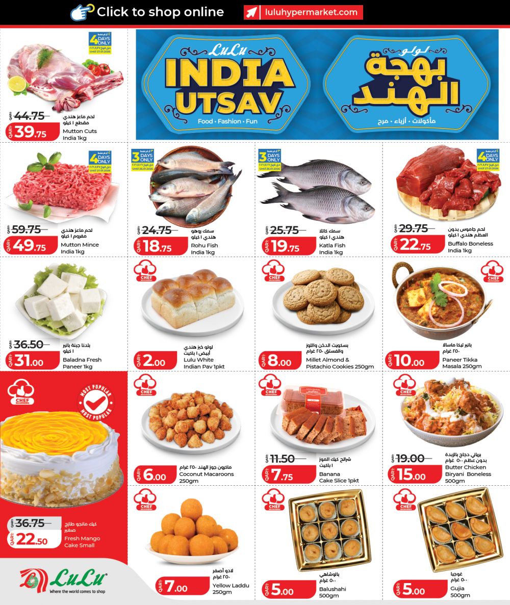 استمتعوا بتوفيرات مميزة على المنتجات الطازجة، والبقالة، والحلويات، والأطباق الهندية الأصيلة.