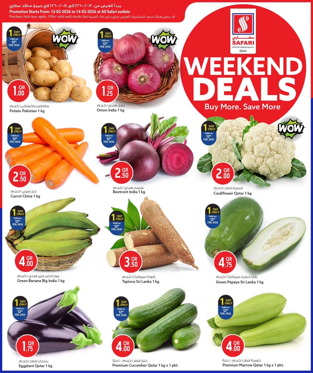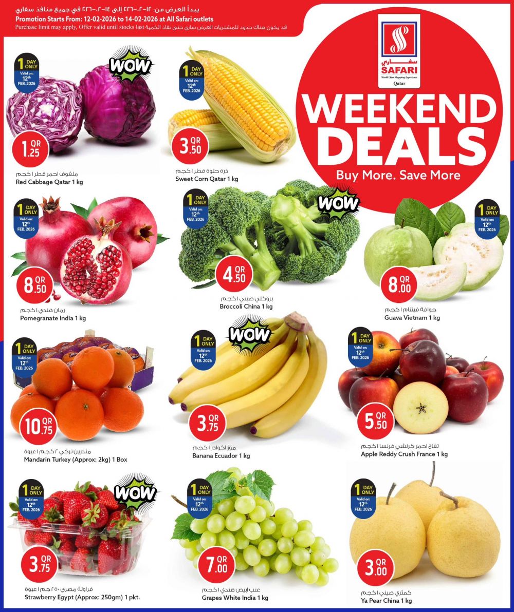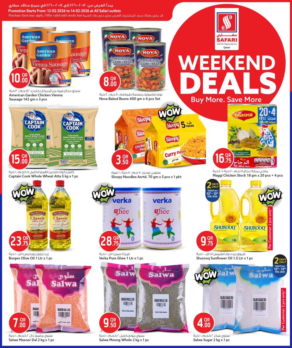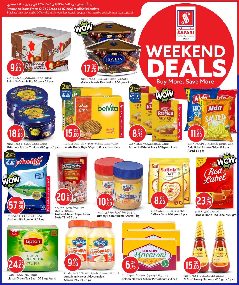 عروض نهاية الأسبوع المميزة متوفرة الآن في سفاري! استمتع بعروض لا تُقاوم على البقالة، والأطعمة الطازجة، والأدوات المنزلية، ومستحضرات التجميل، والملابس، والأجهزة المنزلية، وغيرها الكثير!