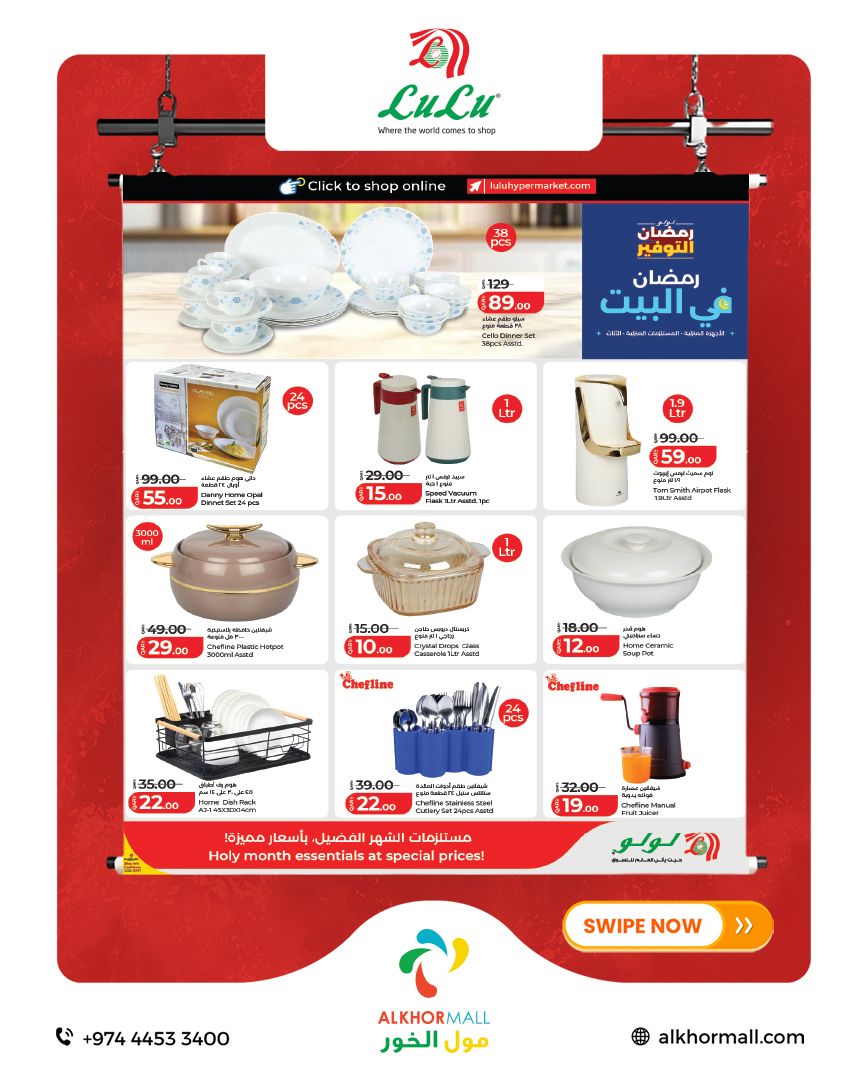 استعدوا للشهر الفضيل مع عروض رائعة على أدوات المطبخ، ومستلزمات المنزل، والأجهزة الإلكترونية الضرورية - كل ذلك بأسعار مميزة لفترة محدودة!