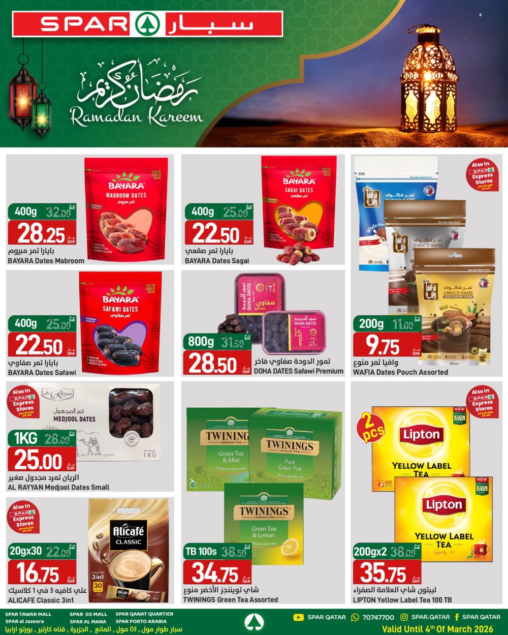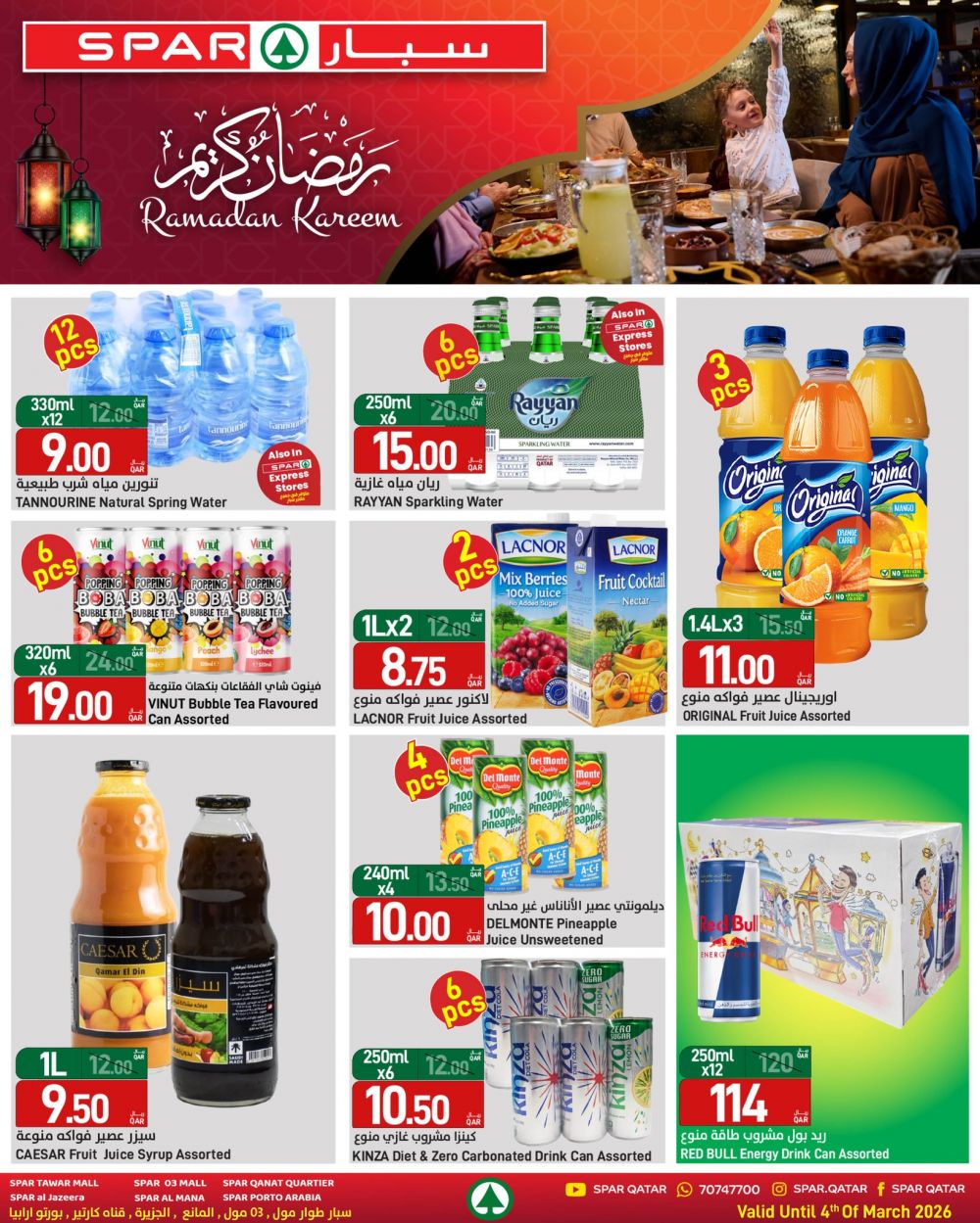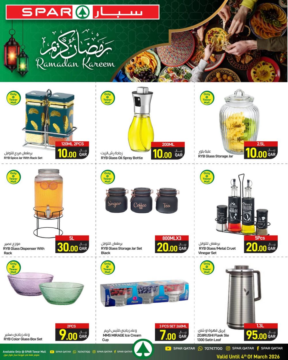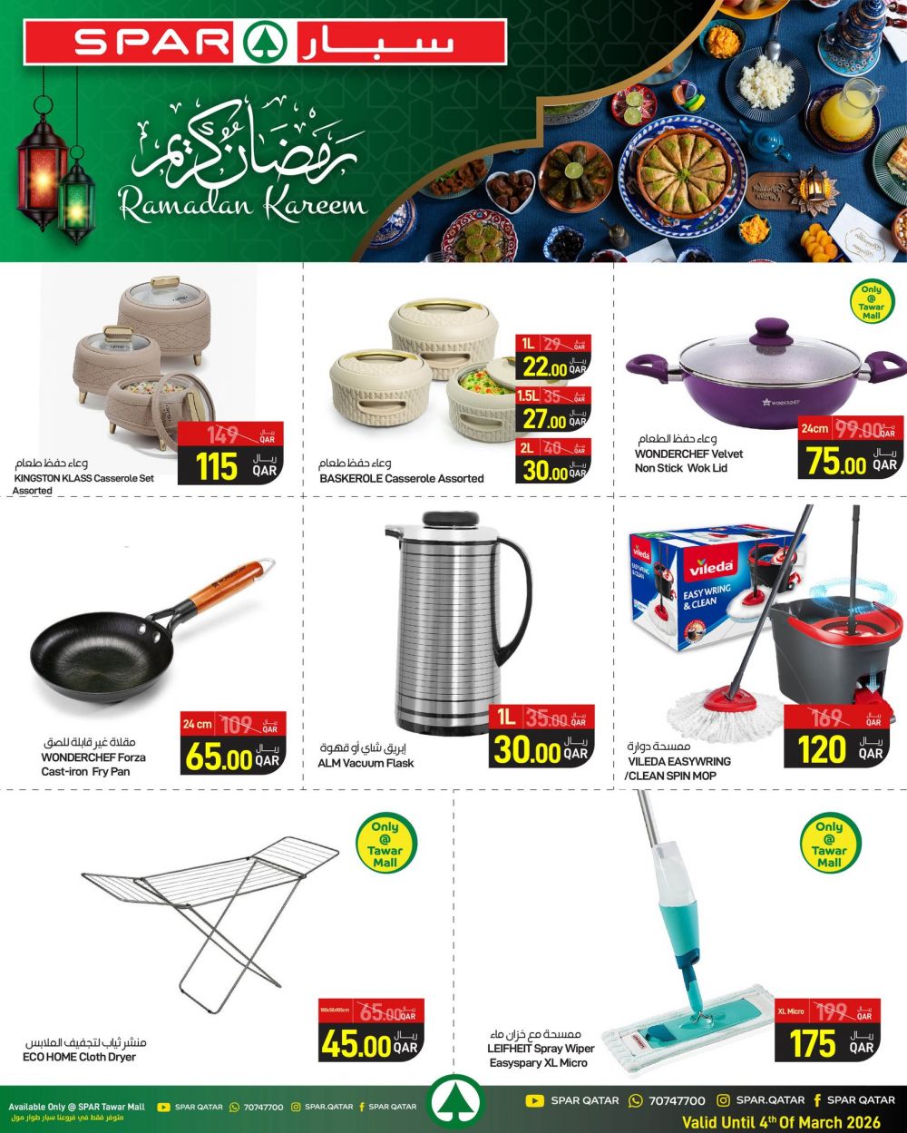 عروض سبار هايبرماركت قطر 2026 وفّر كل احتياجات السحور والإفطار من المنتجات الطازجة والمواد الغذائية، واستمتع بأجواء رمضان براحة وسهولة. صالح لغاية 4 مارس 2026.