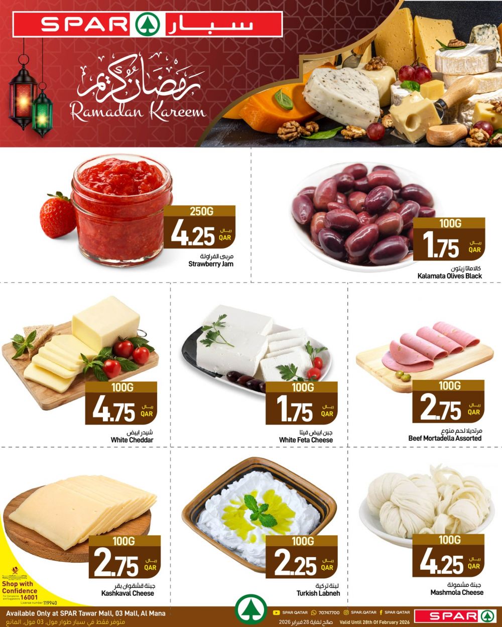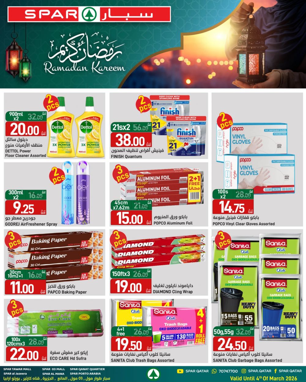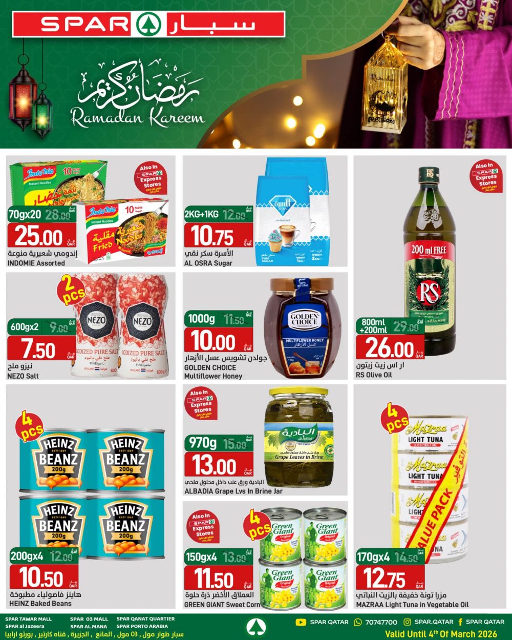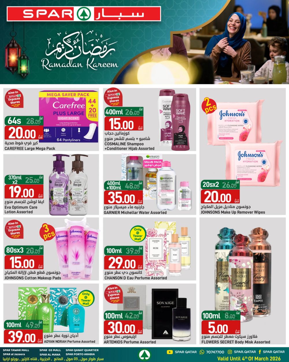 عروض سبار هايبرماركت قطر 2026 وفّر كل احتياجات السحور والإفطار من المنتجات الطازجة والمواد الغذائية، واستمتع بأجواء رمضان براحة وسهولة. صالح لغاية 4 مارس 2026.