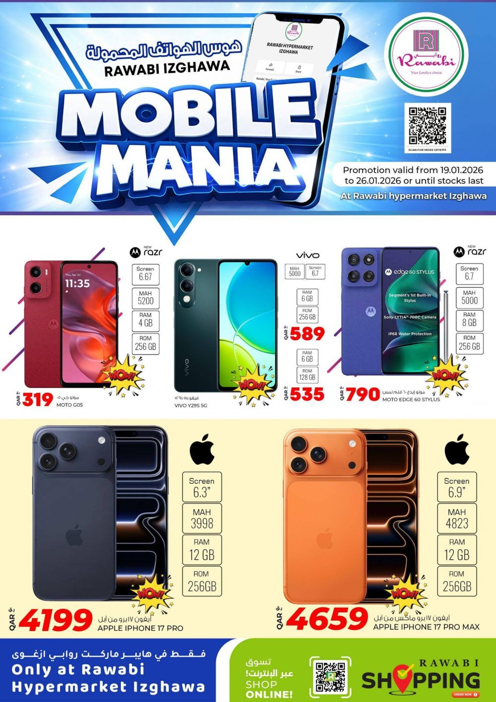 AL RAWABI Hypermarket Qatar Offers 2026 Mobile Mania at Rawabi Izghawa! Latest smartphones at WOW prices 19 to 26 Jan 2026 Till stocks last